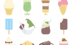 かき氷・たこ焼き・りんご飴を売っている夏祭り屋台のイラストです。