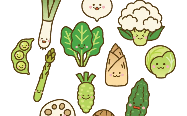 食育や保育教材にぴったりの可愛い野菜イラスト第2弾。枝豆やたけのこ、わさびなどユニークな野菜も収録。無料&商用OKのフリー素材です!