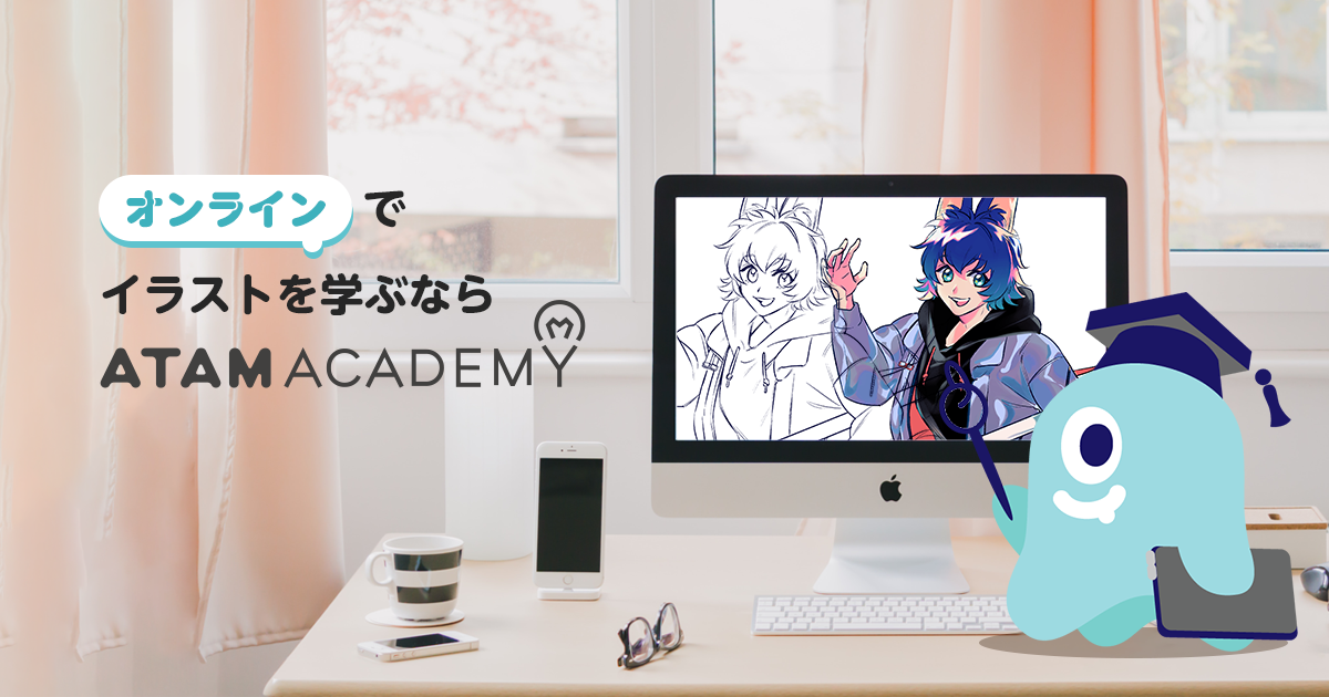アタムアカデミーは、小学生・中高生を対象とした、子どもから通えるオンラインイラスト教室です。